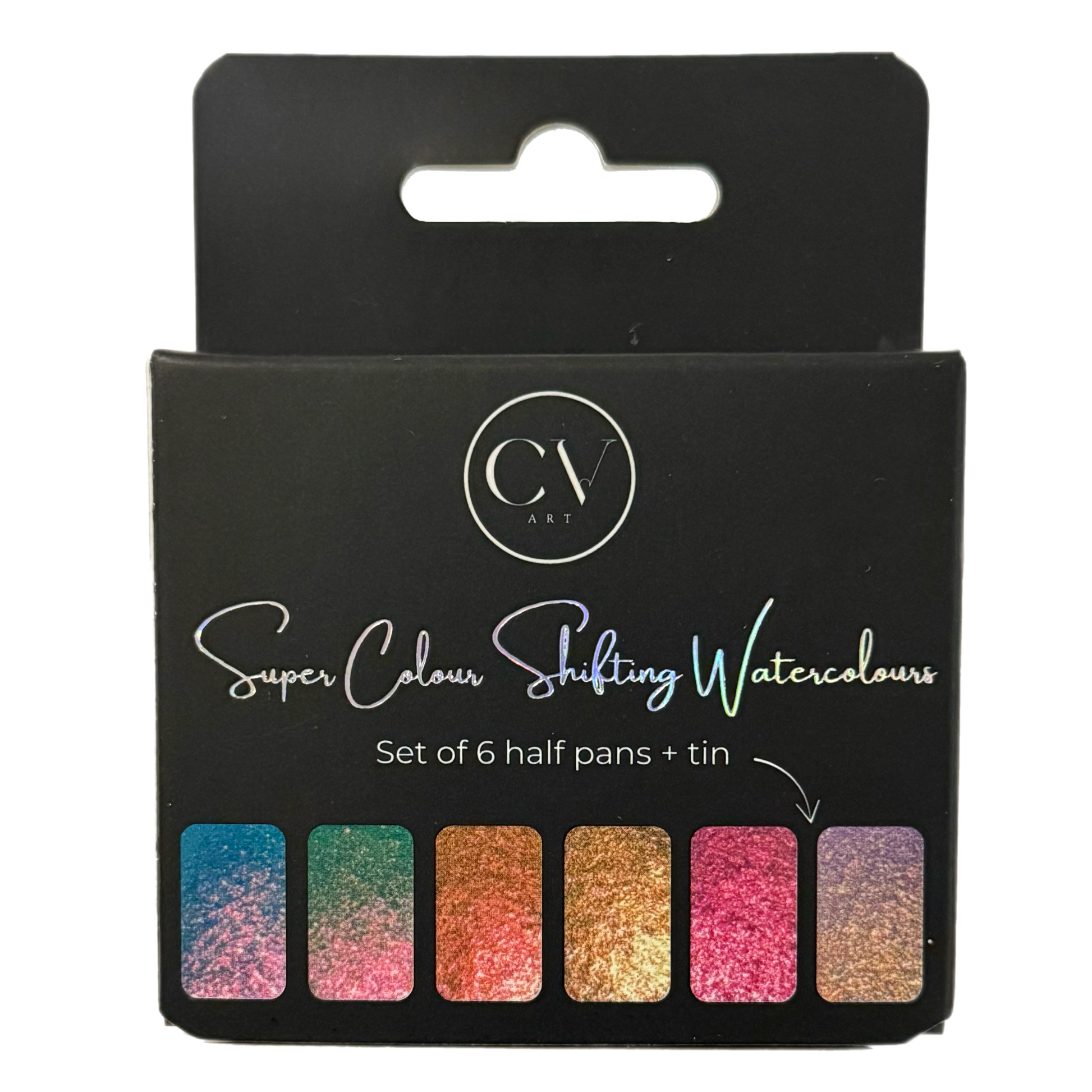 6 half pans of each colour in the Pastel Super Colour Shifting Watercolour Set, tin case included